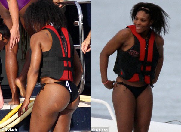 Christmas day 30 year old tennis star Serena Williams hit Miami’s beach unleashing that beast sized donk of hers that swallowed up her skimpy bikini making it look like a g-string. Serena with out make up does nothing for me but when she is wearing a bikini exposing her body like this it would keep me focused on the bigger picture. The fact that Drake and Common are really beefing over Serena got me thinking she might be working with something to fight over.Thoughts?